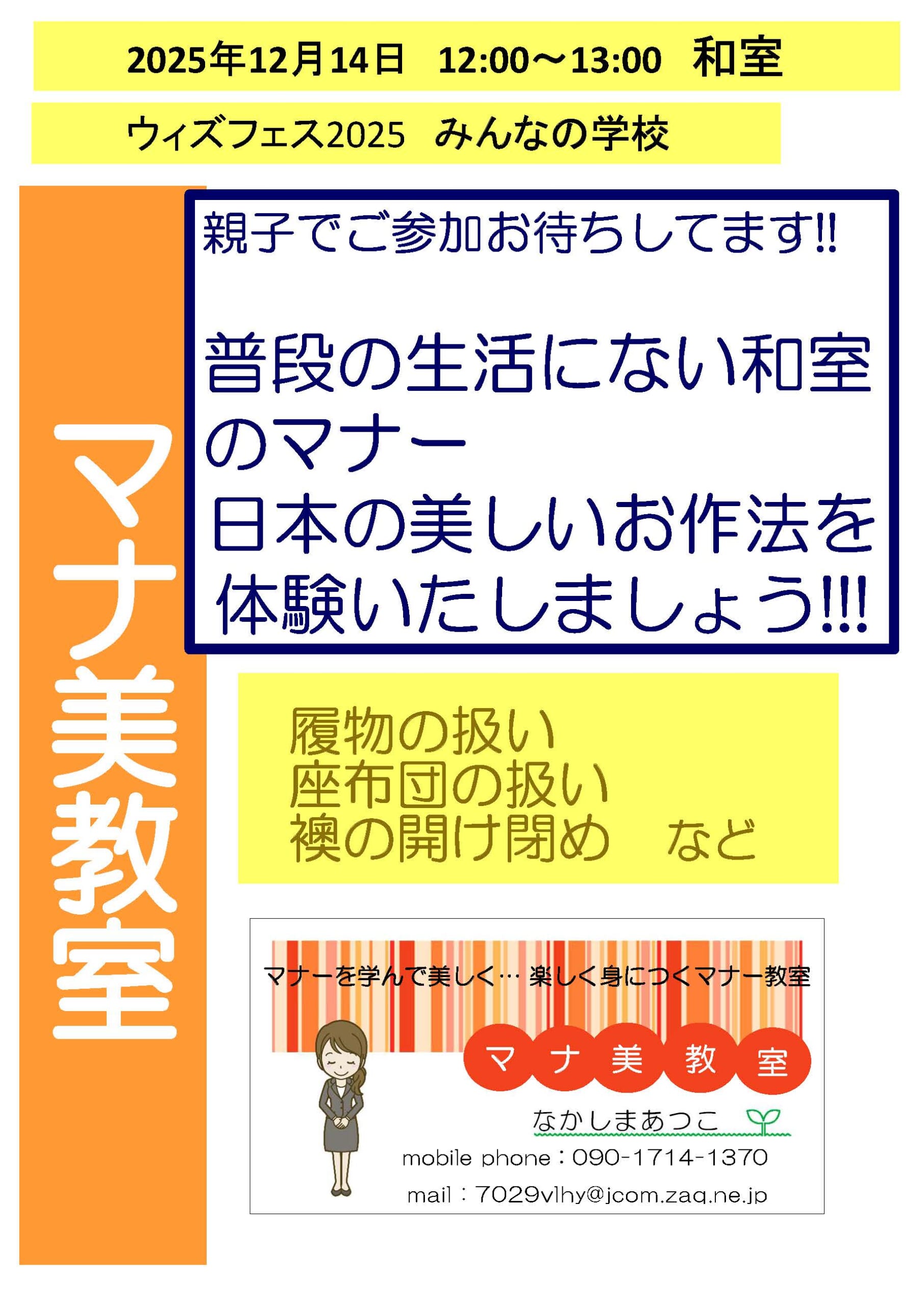 内容 和室でのマナーを実技で学習していただきます。履物の扱い、襖の開け方閉め方、座布団の扱い等、畳にふれて日本の和に親しんでいただきたいと思います。