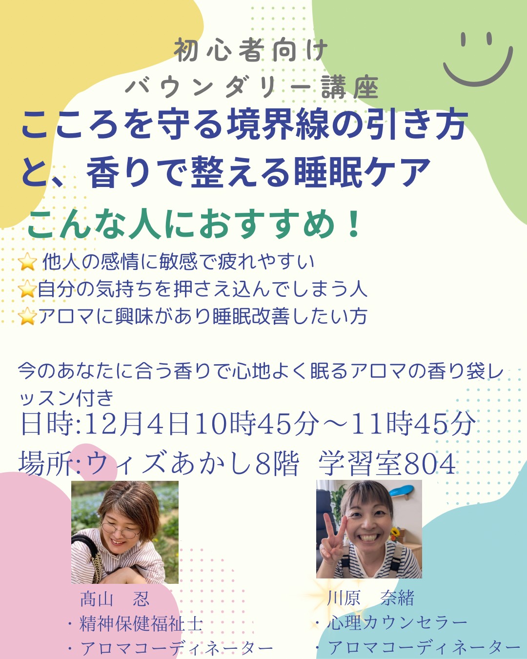 内容 複雑性トラウマの症状による心身の不調に、セルフケアが効果的であることを説明します。また、発達障害のある配偶者をもち疲弊している方、性暴力に遭った方に対して、気力回復を目指す進化系自助会を開催していることを紹介(令和7年度神戸市地域貢献活動補助金採択事業)。気力回復を目指す身体からのアプローチによる自助会という枠組みの支援はどこにもなく、対象者は困り果て孤立しています。このような支援が始まっていることを知らせること自体が支援です。