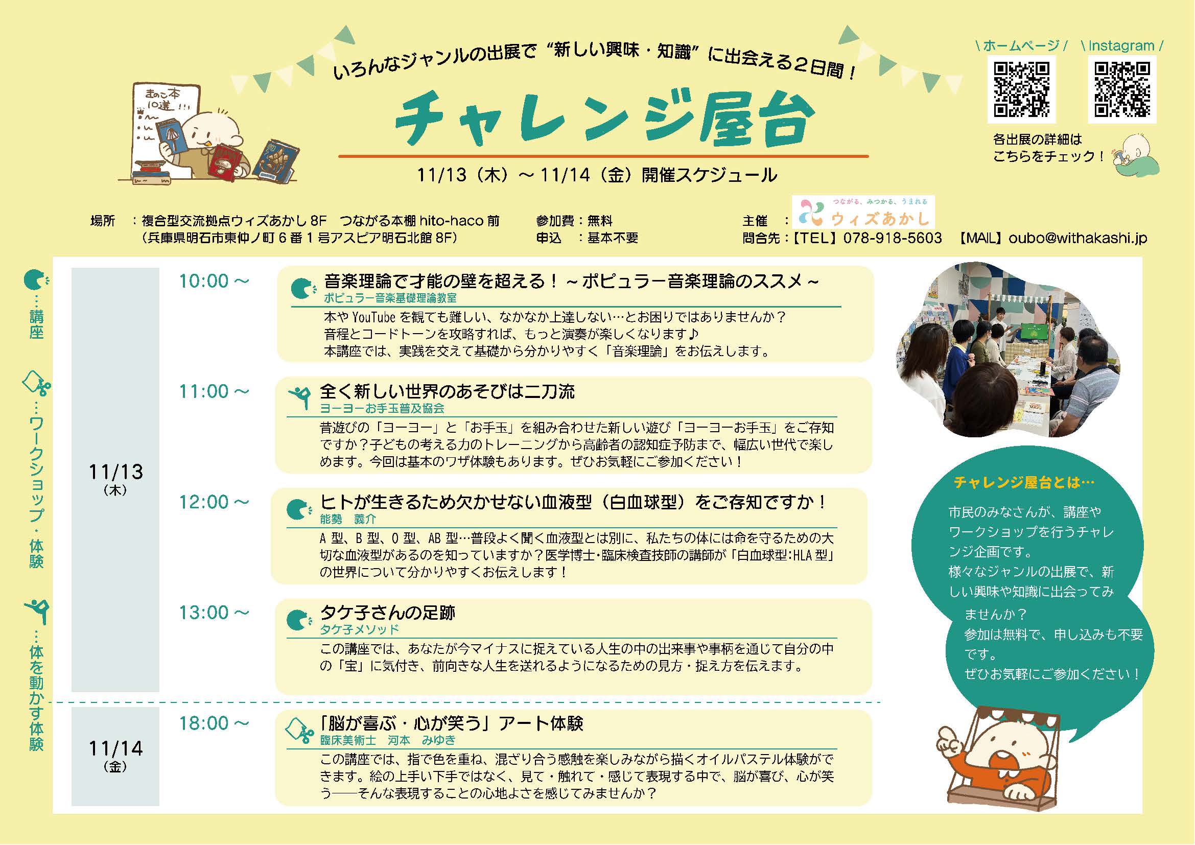 空き状況はウィズあかしのSNSや、館内に設置したチャレンジ屋台のからご確認いただけます。
