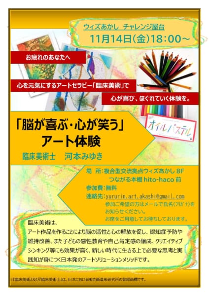 18:00~19:00 「脳が喜ぶ・心が笑う」アート体験(臨床美術士 河本 みゆき)