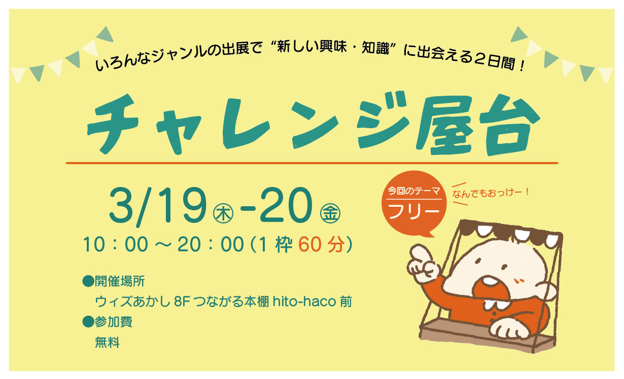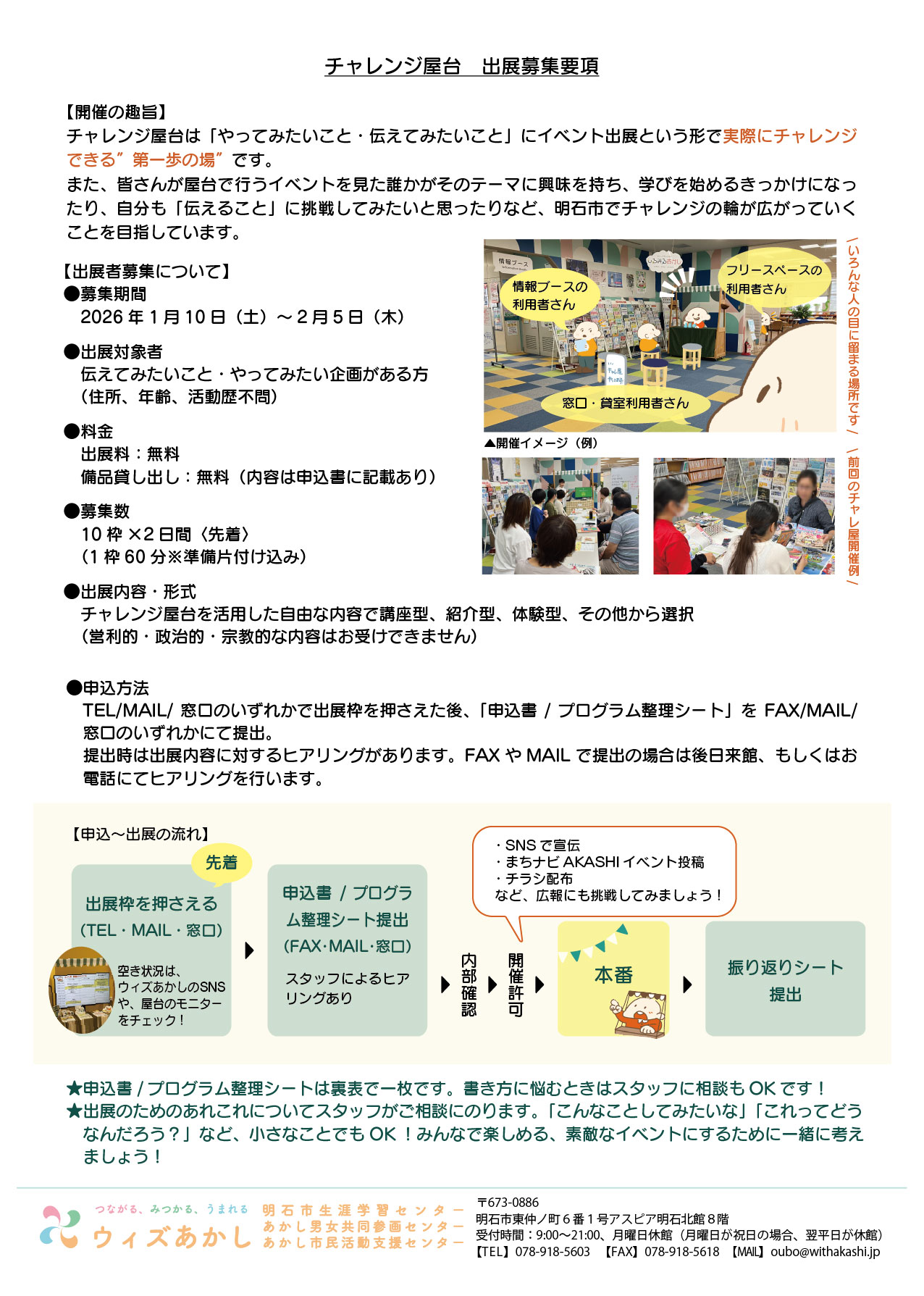 1.【先着】出展枠を押さえる(TEL・MAIL・ウィズあかし窓口)