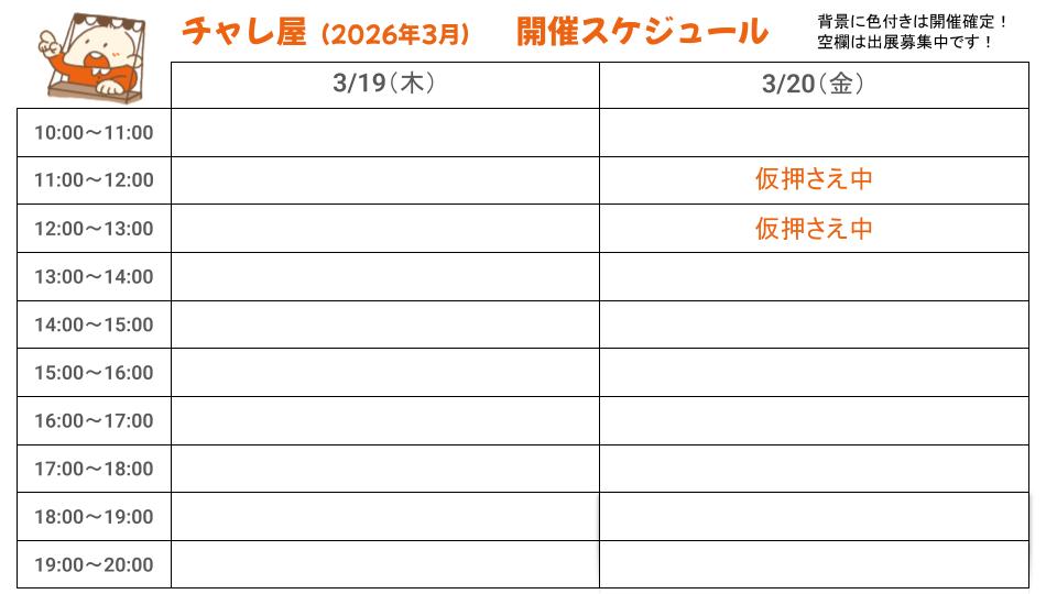 2026年3月19日(木)~20(金)10:00~20:00  ※1枠60分
