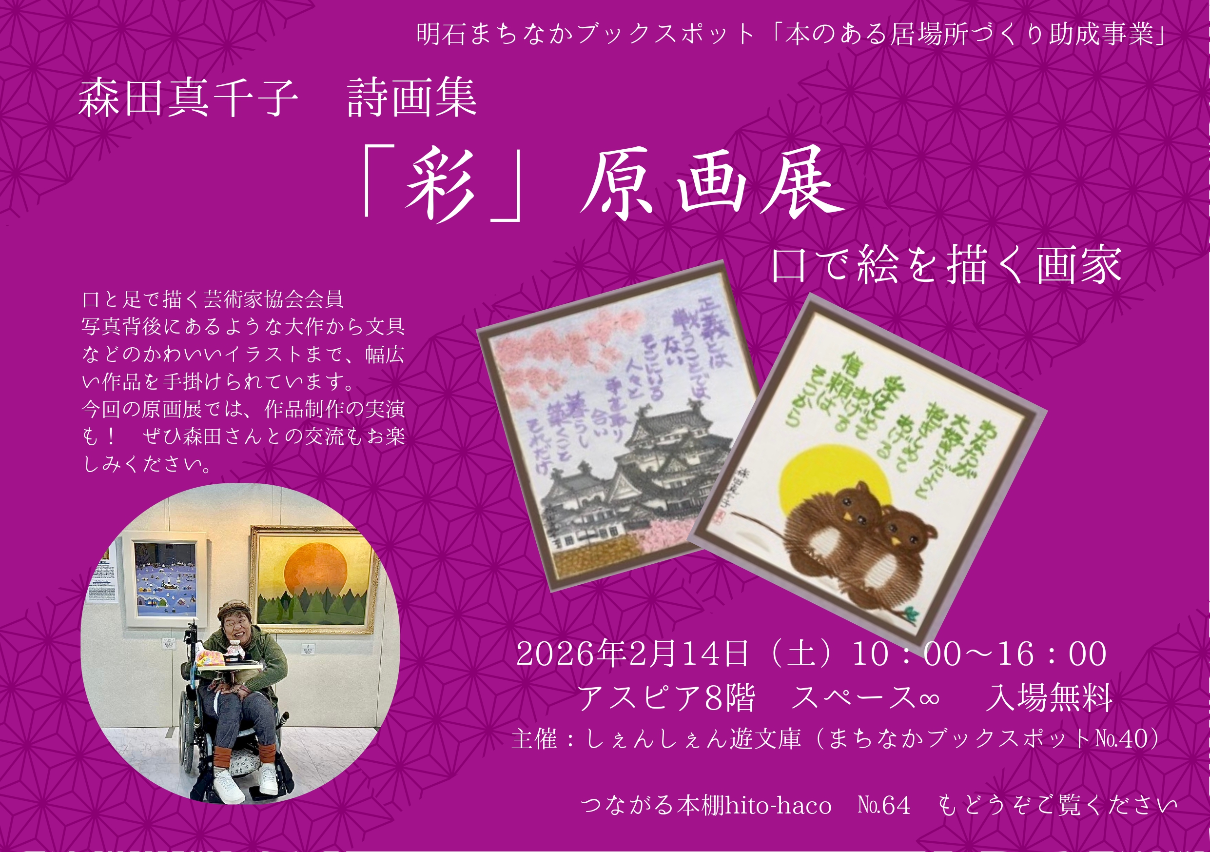 口で描く画家 森田真千子さんの詩画集「彩」原画展をします。